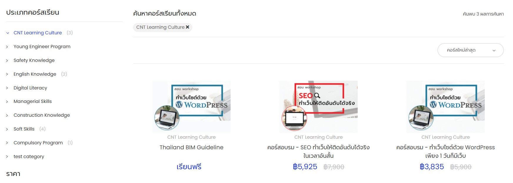 3. ระบบแสดงรายการคอร์สเรียนทั้งหมด ในหมวดหมู่ที่เลือก