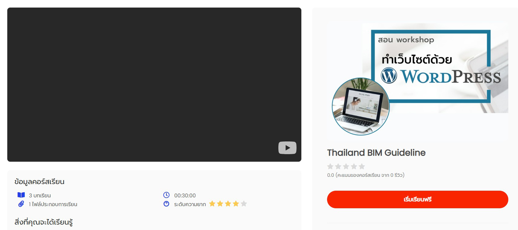 5. ระบบแสดงข้อมูล คอร์สเรียนแสดงวิดีโอตัวอย่าง / เนื้อหา / เอกสาร